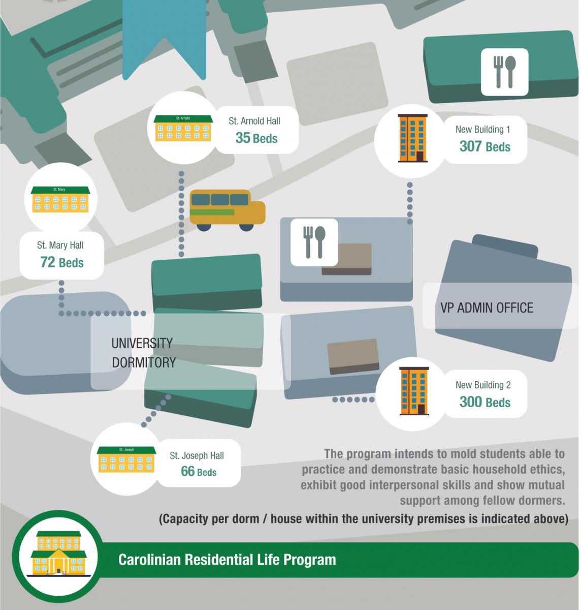 Carolinian Residential Life Program, feat. bed capacity per building